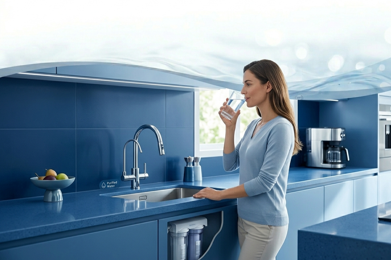 Şebeke suyunu, sağlıklı bir yaşam kaynağına dönüştürüyoruz. Evsel su arıtma sistemlerimiz, çok aşamalı ters ozmos (Reverse Osmosis) teknolojisi kullanarak suyunuzu tortu, klor ve kötü kokulardan temizler. Sağlıklı: Zengin mineral dengesiyle bebekleriniz ve sevdikleriniz için idealdir. Ekonomik: Damacana ve pet şişe masraflarını ortadan kaldırır. Pratik: Mutfak tezgahı altına kolayca entegre edilir, taze su her an elinizin altında olur.
